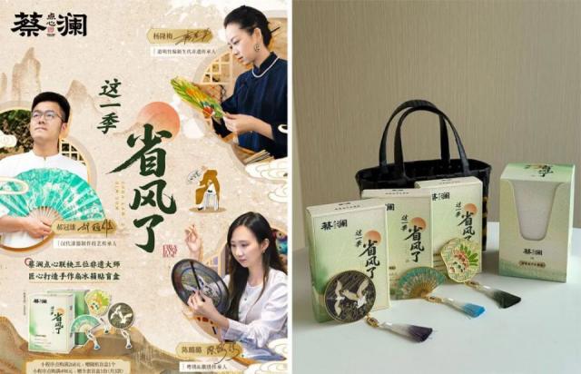 最近,他们就与道明竹编、汉代漆器、粤绣潮绣等传承人合作,推出限量非遗扇子、冰箱贴盲盒。