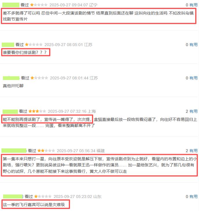 “不如改叫‘乌镇戏剧节宣传片’吧”、“谁要看你们排话剧”、“宣传话剧点到为止就好”、“飞行嘉宾可以说是灾难级”等等。