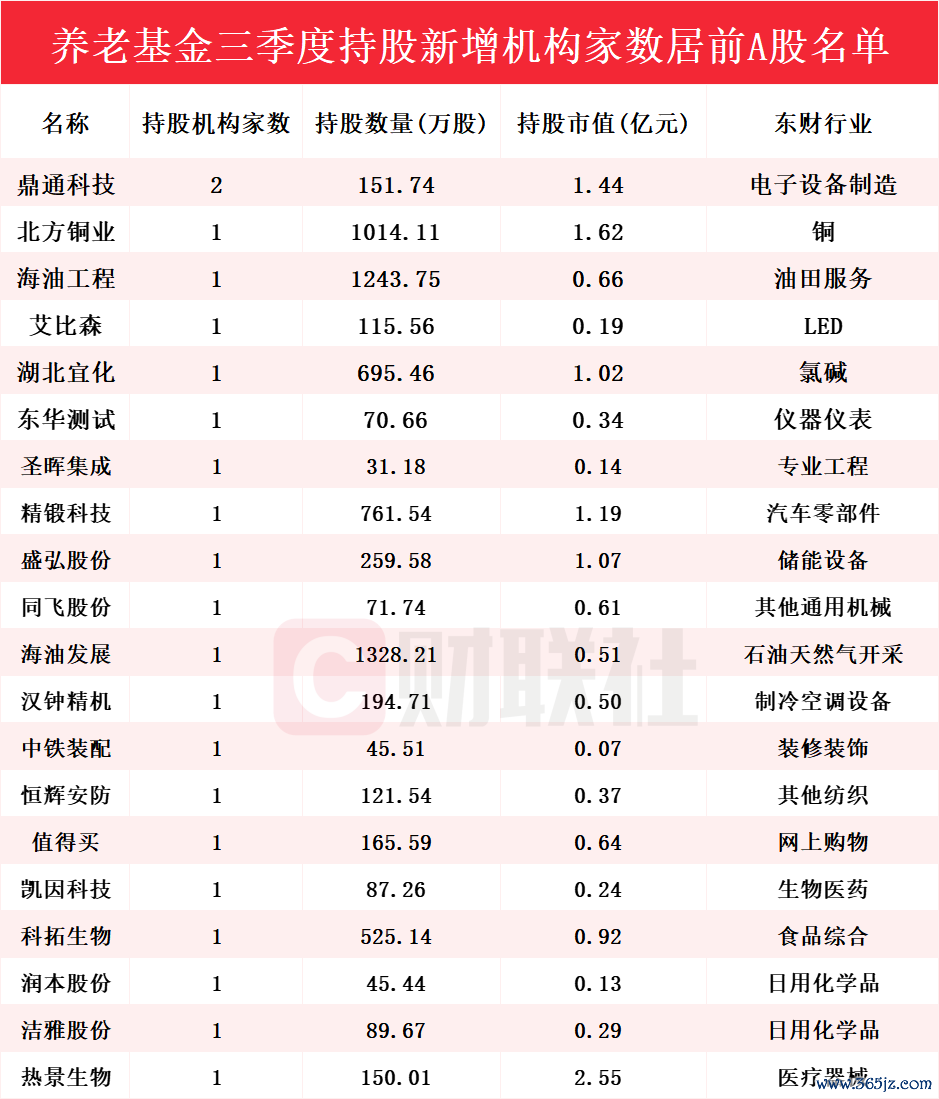 养老基金Q3重仓股曝光!新进20只个股前十大流通股东榜,鼎通科技获增持家数最多