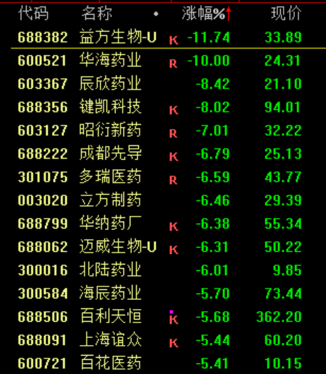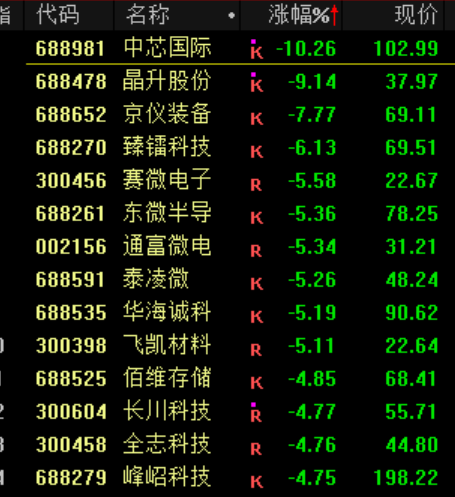 下跌方面,半导体芯片股走低,中芯国际跌超10%。